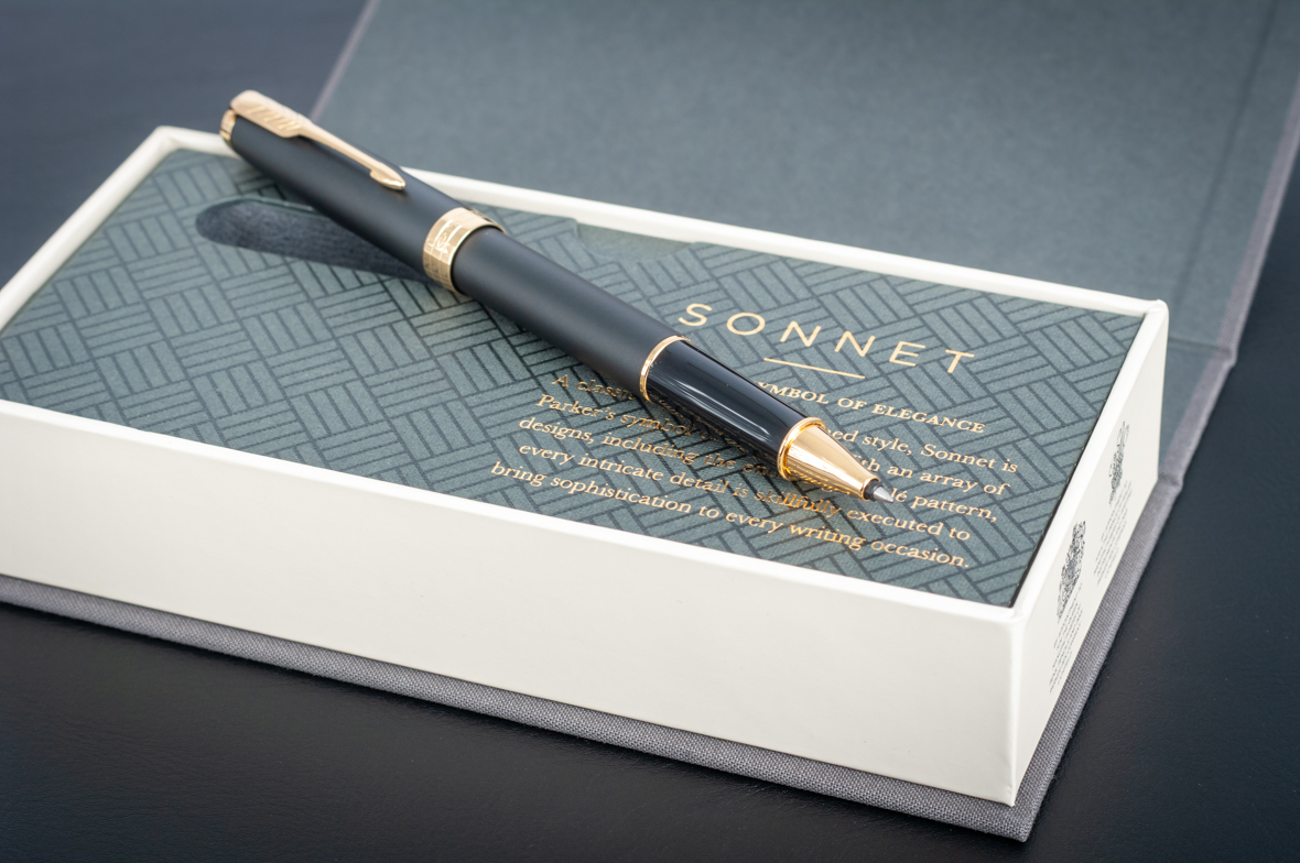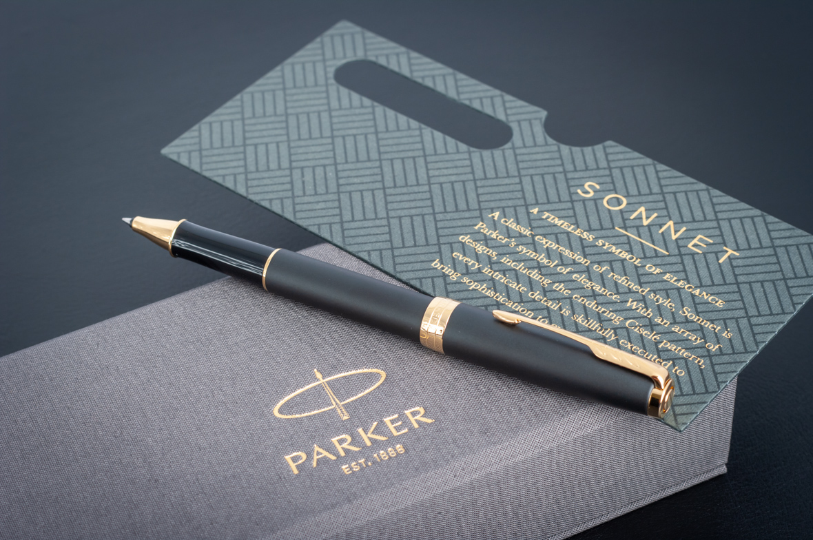 Ручка роллер Parker Sonnet Matte Black GT от официального дилера Parker в Нижнем Новгороде. Вы можете дополнительно заказать гравировку, которая подчеркнет Вашу оригинальность и придаст памятность статусному подарку. Все ручки Паркер поставляются в фирменном футляре.